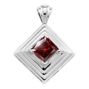 North Aurora Bezel Set Princess Cut Platinum Pendant with Deep Red Diamond