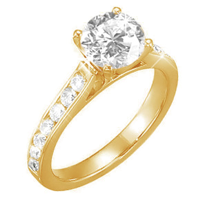 Channel Set Cathedral 14K Yellow Gold Engagement Ring with White Diamond