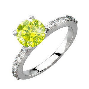 Classic 4-Prong Pave Platinum Engagement Ring with Fancy Greenish-Yellow Diamond
