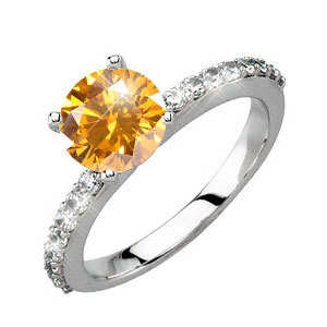 Classic 4-Prong Pave Platinum Engagement Ring with Fancy Orange-Yellow Diamond