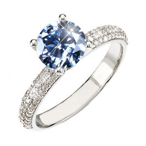 Classic Micropave Platinum Engagement Ring with Fancy Blue Diamond