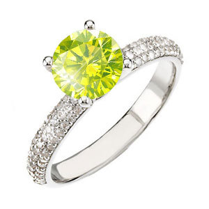 Classic Micropave Platinum Engagement Ring with Fancy Greenish-Yellow Diamond