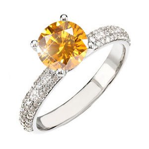 Classic Micropave Platinum Engagement Ring with Fancy Orange-Yellow Diamond