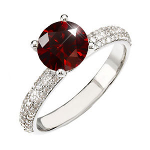 Classic Micropave Platinum Engagement Ring with Fancy Deep Red Diamond