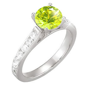 Channel Set Cathedral Platinum Engagement Ring with Fancy Greenish-Yellow Diamond