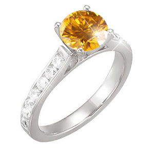 Channel Set Cathedral Platinum Engagement Ring with Fancy Orange-Yellow Diamond