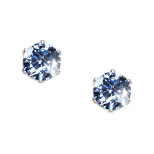 Ultra Safe Six Prong 14K White Gold Stud Earrings with Greenish-Yellow Diamonds