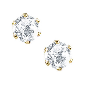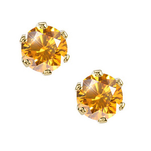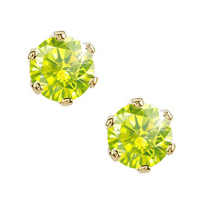 Ultra Safe Six Prong 14K Yellow Gold Stud Earrings with Greenish-Yellow Diamonds