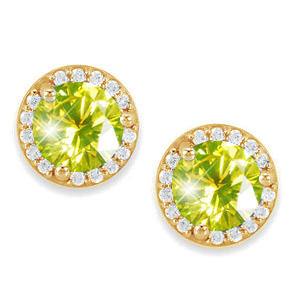 Halo Martini Style Stud 14K Yellow Gold Earrings with Fancy Greenish-Yellow Diamonds