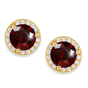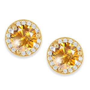 Halo Martini Style Stud 14K Yellow Gold Earrings with Fancy Orange-Yellow Diamonds