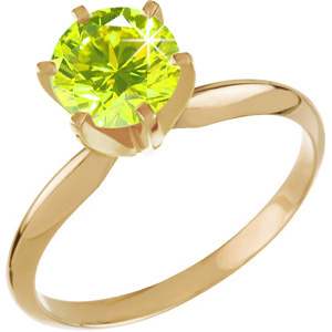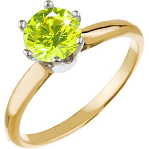 6-Prong Heavy-Shank Solitaire 14K Yellow Gold Ring with Fancy Greenish-Yellow Diamond