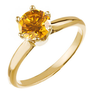 6-Prong Heavy-Shank Solitaire 14K Yellow Gold Ring with Fancy Orange-Yellow Diamond
