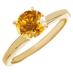 4-Prong Classic Solitaire 14K Yellow Gold Ring with Fancy Orange-Yellow Diamond