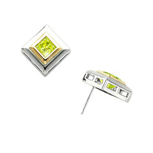 Two-Tone Bezel-Set 14K White/Yellow Gold Stud Earrings with Greenish-Yellow Diamonds