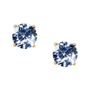 Elegant Round Cut Stud 14K Yellow Gold Earrings with Blue Diamonds
