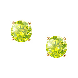 Elegant Round Cut Stud 14K Yellow Gold Earrings with Greenish-Yellow Diamonds
