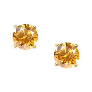 Elegant Round Cut Stud 14K Yellow Gold Earrings with Orange-Yellow Diamonds
