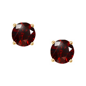 Elegant Round Cut Stud 14K Yellow Gold Earrings with Deep Red Diamonds