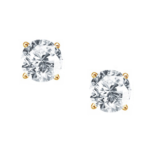 Elegant Round Cut Stud 14K Yellow Gold Earrings with White Diamonds
