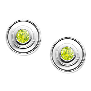 Timeless Bezel-Set 14K White Gold Stud Earrings with Greenish-Yellow Diamonds