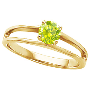 Modern Engagement 14K Yellow Gold Ring with Fancy Greenish-Yellow Diamond