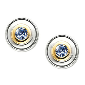 Timeless Two-Tone Bezel-Set 14K White/Yellow Gold Stud Earrings with Blue Diamonds