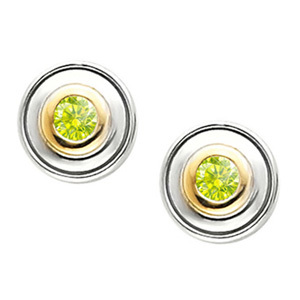 Timeless Two-Tone Bezel-Set 14K White/Yellow Gold Stud Earrings with Greenish-Yellow Diamonds