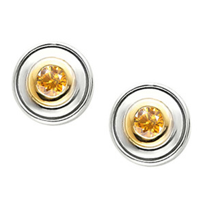 Timeless Two-Tone Bezel-Set 14K White/Yellow Gold Stud Earrings with Orange-Yellow Diamonds