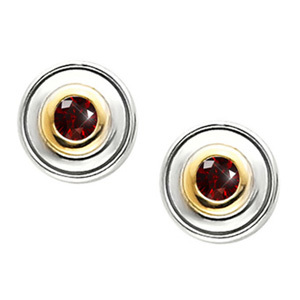 Timeless Two-Tone Bezel-Set 14K White/Yellow Gold Stud Earrings with Deep Red Diamonds