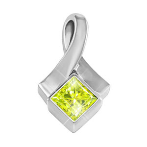 Bezel Set Princess Cut 14K White Gold Pendant with Greenish-Yellow Diamond