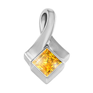 Bezel Set Princess Cut 14K White Gold Pendant with Orange-Yellow Diamond