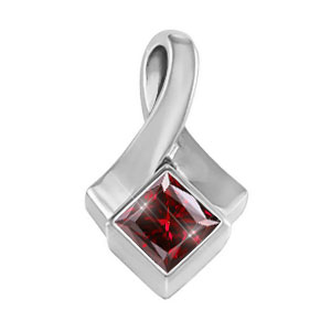 Bezel Set Princess Cut 14K White Gold Pendant with Deep Red Diamond