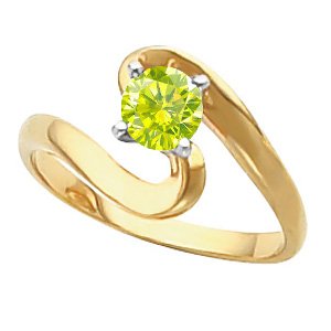 Ocean Wave Solitaire Engagement 14K Yellow Gold Ring with Greenish-Yellow Diamond