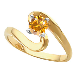 Ocean Wave Solitaire Engagement 14K Yellow Gold Ring with Orange-Yellow Diamond