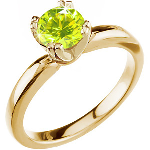 Ultra-safe 8-prong Solitaire 14K Yellow Gold Ring with Fancy Greenish-Yellow Diamond