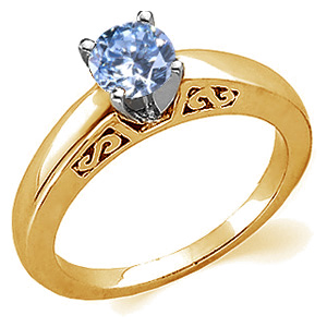 Scroll Cathedral Solitaire 14K Yellow Gold Ring with Fancy Blue Diamond