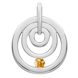 Channel Set Circle 14K White Gold Pendant with Orange-Yellow Diamond