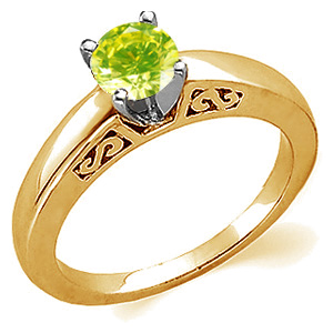 Scroll Cathedral Solitaire 14K Yellow Gold Ring with Fancy Greenish-Yellow Diamond