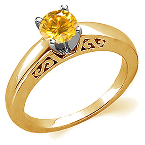 Scroll Cathedral Solitaire 14K Yellow Gold Ring with Fancy Orange-Yellow Diamond