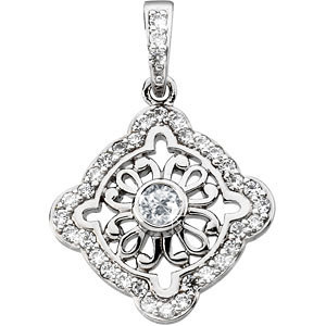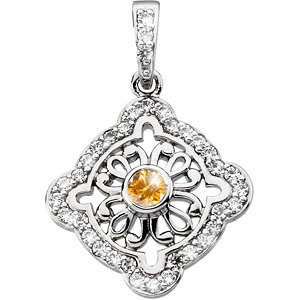 Vintage Round Cut Center 14K White Gold Pendant with Fancy Orange-Yellow Diamond