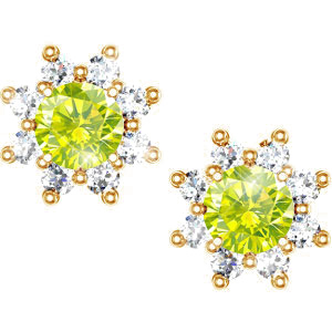 Snowflake 8-prong Stud 14K Yellow Gold Earrings with Fancy Greenish-Yellow Diamonds