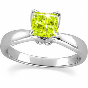 4-Prong Solitaire Platinum Ring with Fancy Greenish-Yellow Diamond